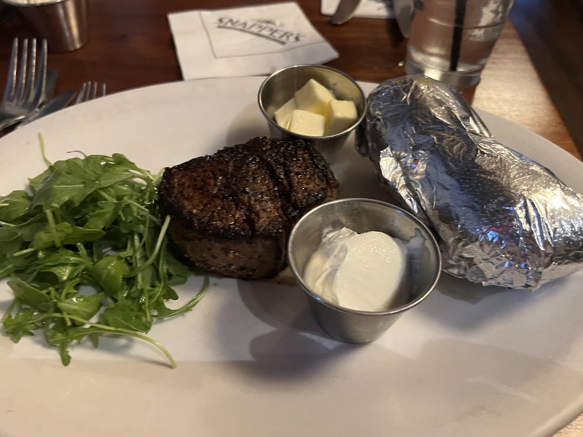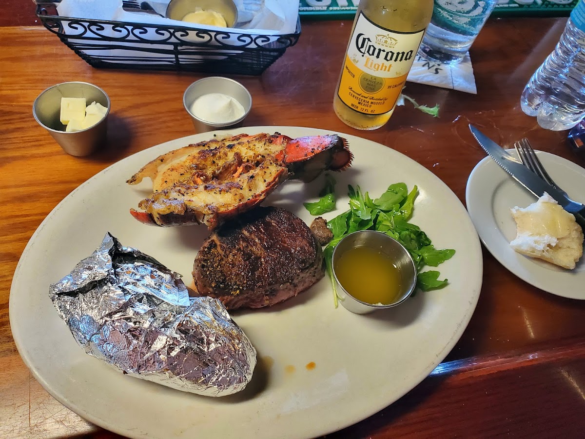 Ordered the fillet and New York Strip, was fantastic. Came with house salad (no other choices) and baked potato or garlic mashed. They only serve wine and beer, no liquor. Inside is very small and only accommodate a small amount of guests, we were lucky enough to get 4 seats at the bar.